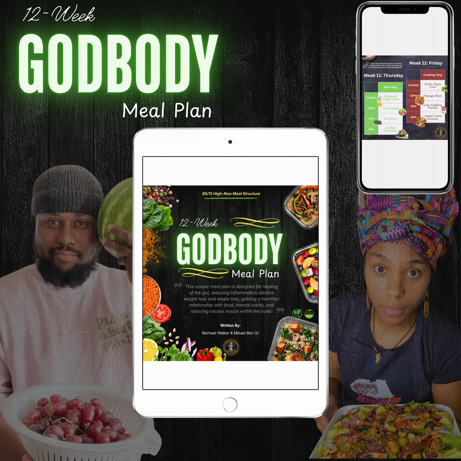 This unique 12-week plan was strategically designed to help heal the gut, reduce inflammation, lose excess weight/waste, gain a healthier relationship with food, increase mental clarity, and remove excess mucus from the body. We use an 85/15 High Raw approach, which basically goes back and forth between fully raw days and cooking days. We are excited for your Godbody Transformation!
